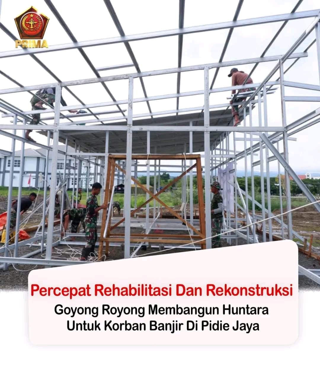 Pemerintah pusat bersama Pemerintah Provinsi Aceh dengan dukungan Zeni Kodam Iskandar Muda terus mempercepat proses rehabilitasi dan rekonstruksi pascabencana banjir dan tanah longsor yang melanda sejumlah wilayah di Provinsi Aceh. Salah satu fokus utama dalam tahap pemulihan ini adalah pembangunan Hunian Sementara atau Huntara bagi masyarakat terdampak, yang ditargetkan dapat diselesaikan pada Februari 2026 atau sebelum memasuki bulan suci Ramadan, Kamis (25/12/2025).