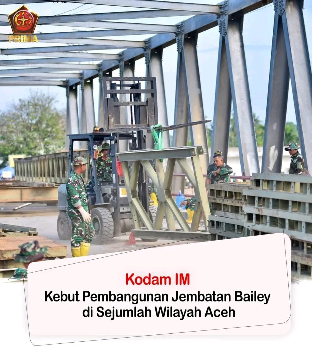 Kodam IM Kebut Pembangunan Jembatan Bailey di Sejumlah Wilayah Aceh